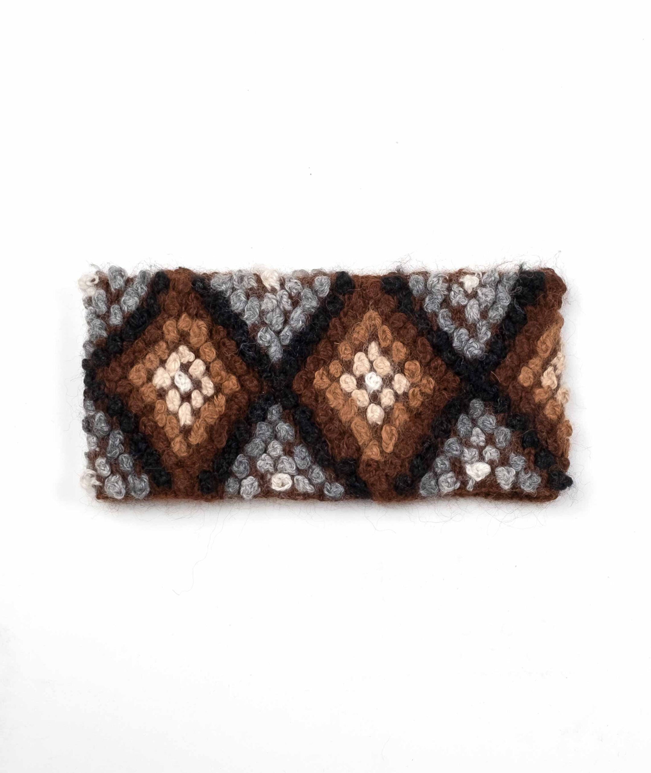 Female band with rhombus embroidery. Handmade in 100% pure alpaca wool. Jersey stitches and pasas for embroidery.